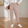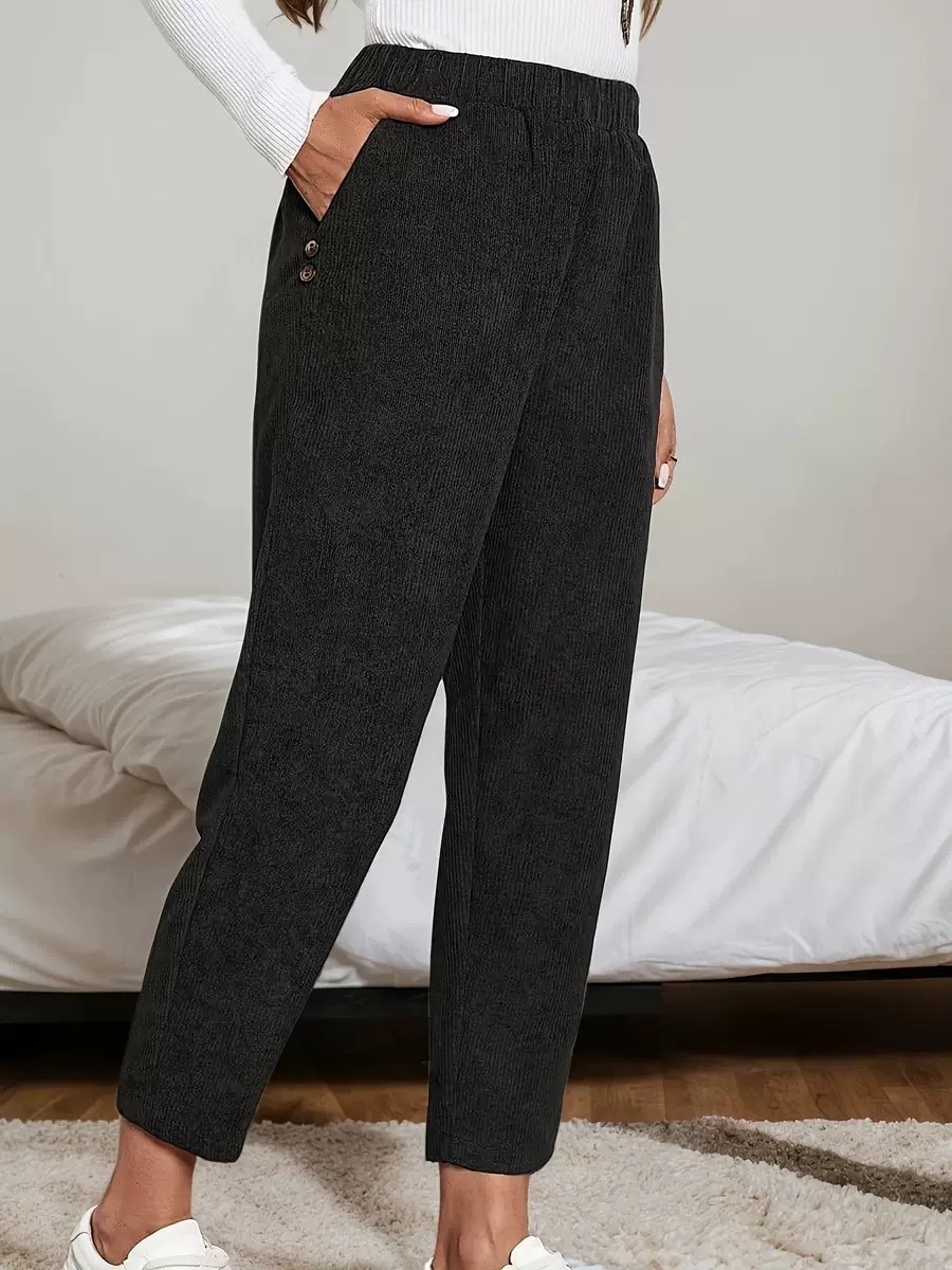 Product information: Color: military green, black, khaki, navy blue Elasticity: non-stretch Pants length: long pants Waist type: elastic waist Size: S, M, L, XL Style type: elegant commute Popular elements: pockets, buttons Style: loose fit Thickness: regular Fabric name: corduroy Main fabric composition: polyester (polyester fiber) Applicable gender: female Pants type: straight leg Style: commuter style