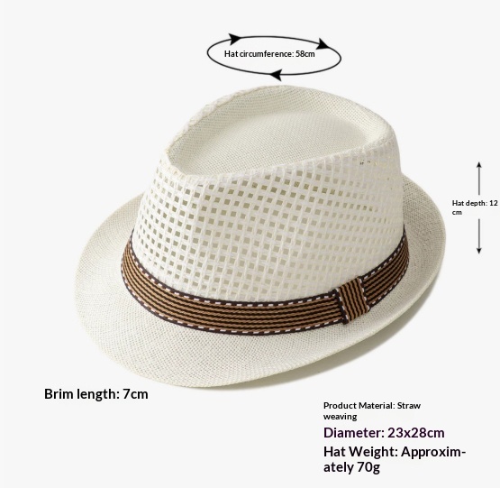 Product information: Processing technique: Warp knitting Fabric name: Straw weave Hat crown style: Flat top Size: 58 cm Features: Breathable, sun protection Suitable season: Summer Style: Resort style