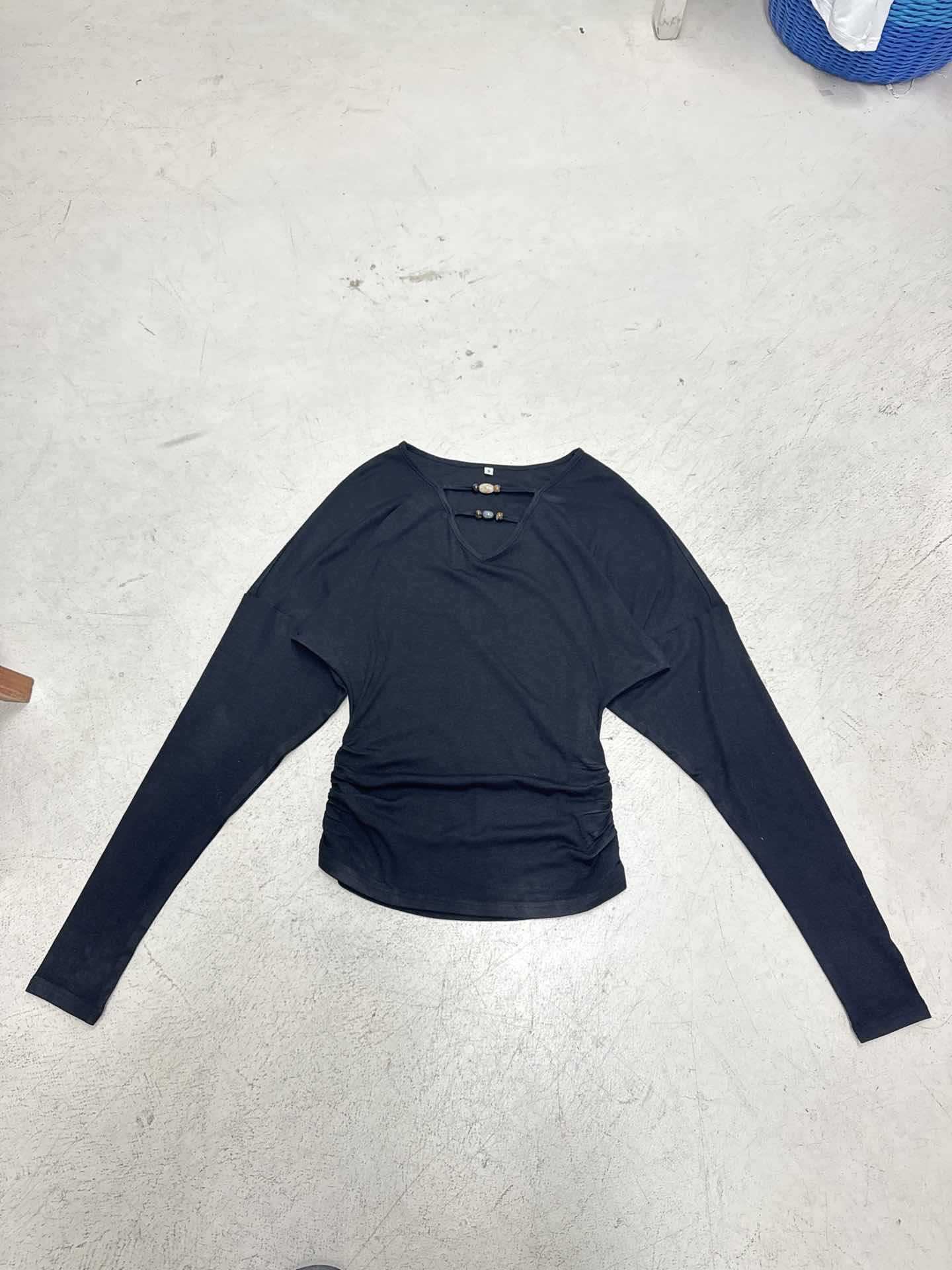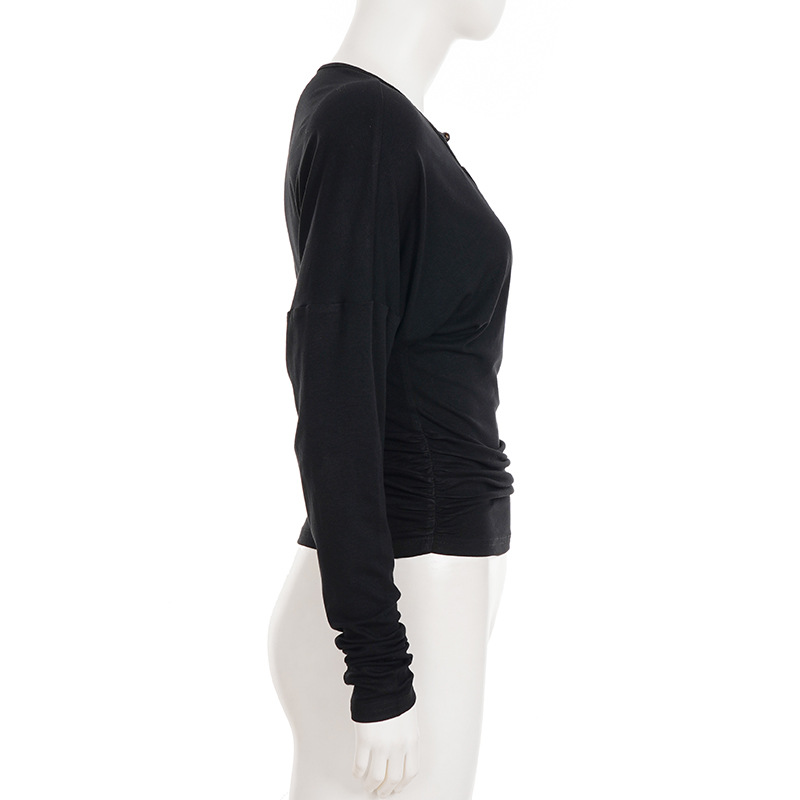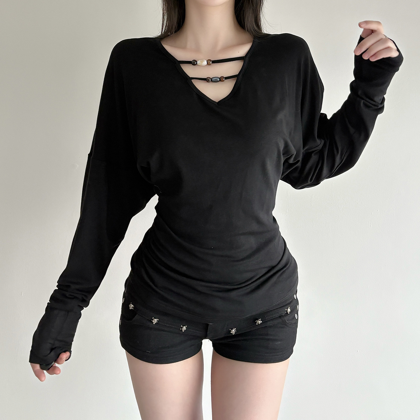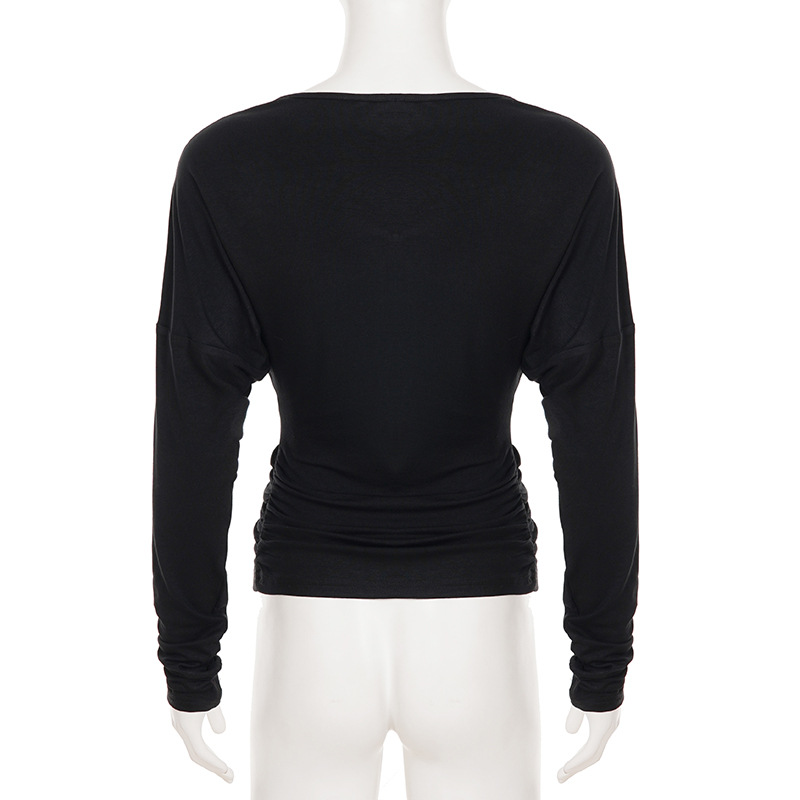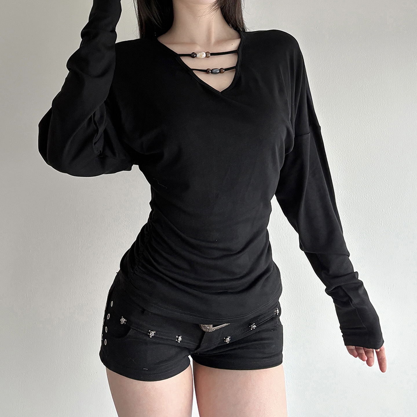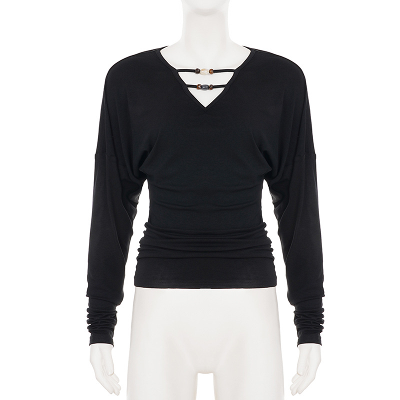 V-neck Beaded Waist-cinching Ruffled Slimming Casual Top